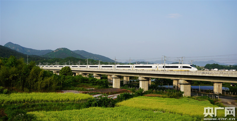 “復(fù)興號”列車飛馳在杭黃高鐵線上。 (央廣網(wǎng)發(fā) 中國鐵路上海局集團(tuán)有限公司提供)