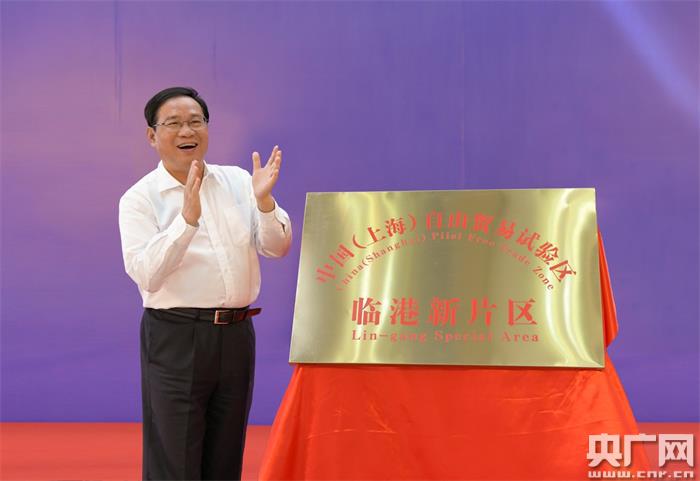 李強(qiáng)為中國(guó)(上海)自由貿(mào)易試驗(yàn)區(qū)臨港新片區(qū)揭牌(央廣網(wǎng)發(fā) 上海市新聞辦供圖)