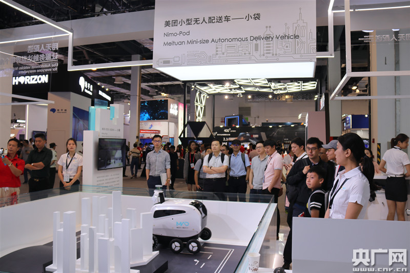 小型無(wú)人配送車吸引眼球(央廣網(wǎng)記者 唐奇云 攝)