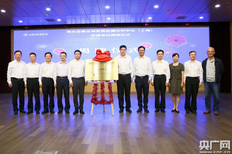 海關(guān)總署全球貿(mào)易監(jiān)測分析中心(上海)共建單位揭牌儀式現(xiàn)場(央廣網(wǎng)發(fā) 上海對外經(jīng)貿(mào)大學供圖)