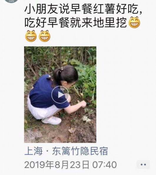 圖片來自民宿主人朋友圈,城里來的孩子饒有興趣地在地里刨起了紅薯