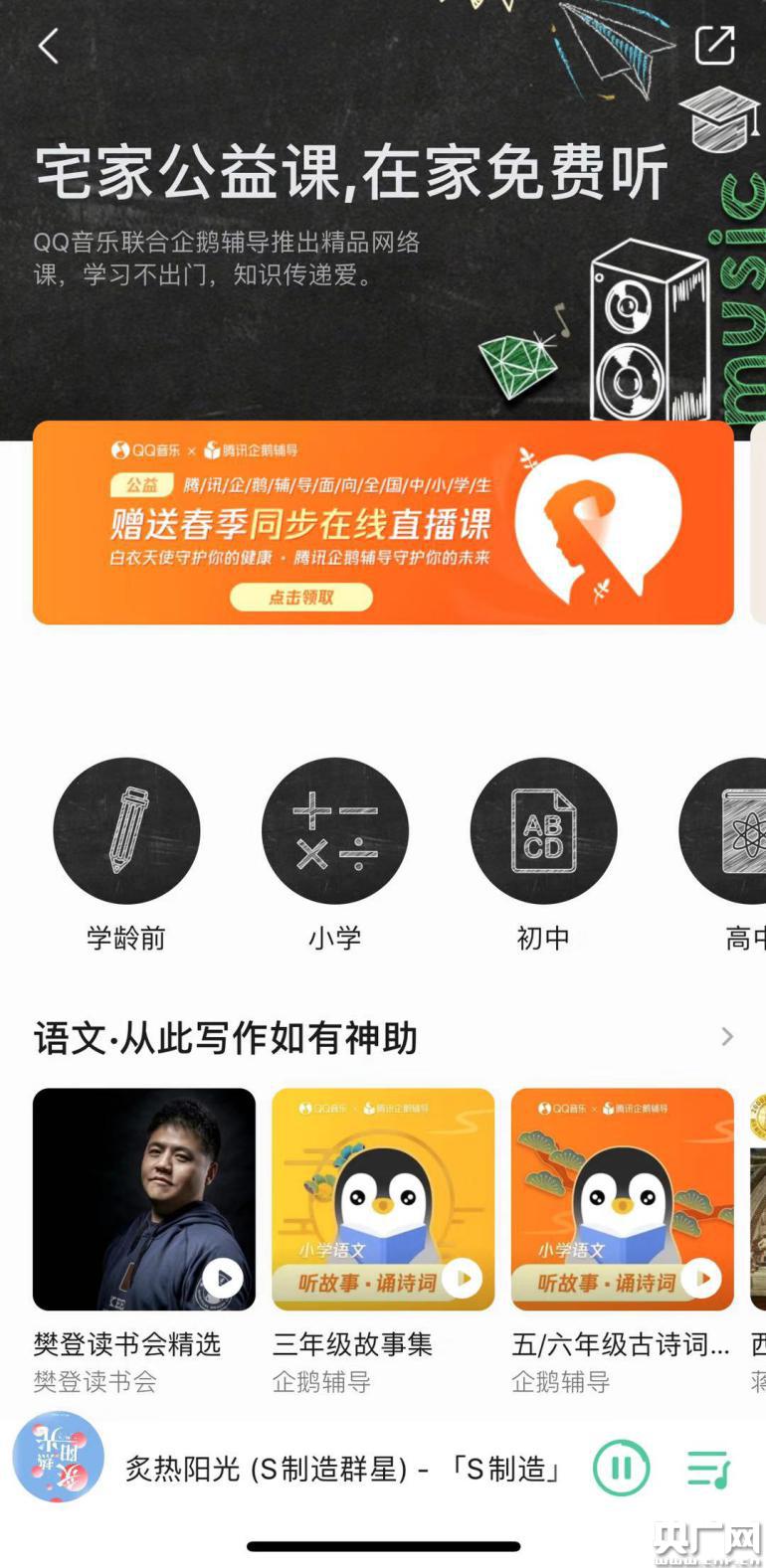 QQ音樂(lè)聯(lián)合企鵝輔導(dǎo)推出全科公益課程(央廣網(wǎng)發(fā) QQ音樂(lè)提供)