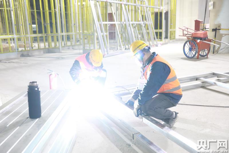 在首個復(fù)工日現(xiàn)場,天文館展示工程已進入樣板段施工階段,工人們正有條不紊地工作著,有的在測量放線、有的在制作隔墻龍骨、有的在安裝頂面鋼骨架轉(zhuǎn)換層、有的在搬運方管材料等。當(dāng)天樣板段共有22名工人在現(xiàn)場施工作業(yè),復(fù)工率按照整個展館作業(yè)人數(shù)約達15%,工人們干勁十足,精神抖擻,呈現(xiàn)出一片繁忙而有序的景象。隨著疫情逐漸緩解,后續(xù)還將有大批工人在做好防控措施的基礎(chǔ)上陸續(xù)進場。