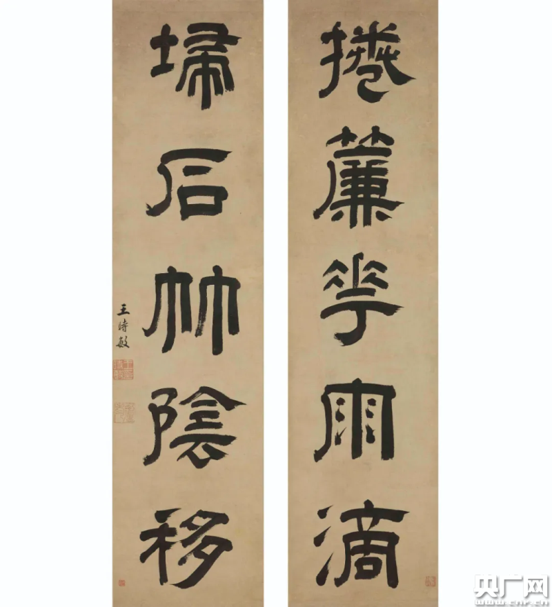 目前,上海博物館所藏清代楹聯(lián)作品有416件,具體涉及作者達(dá)187人。楹聯(lián)書法雖然僅僅是兩條對(duì)稱性的片言只字,但它卻凝聚著中華民族的情懷,它將清代書法帶入到一個(gè)嶄新的藝術(shù)境界。