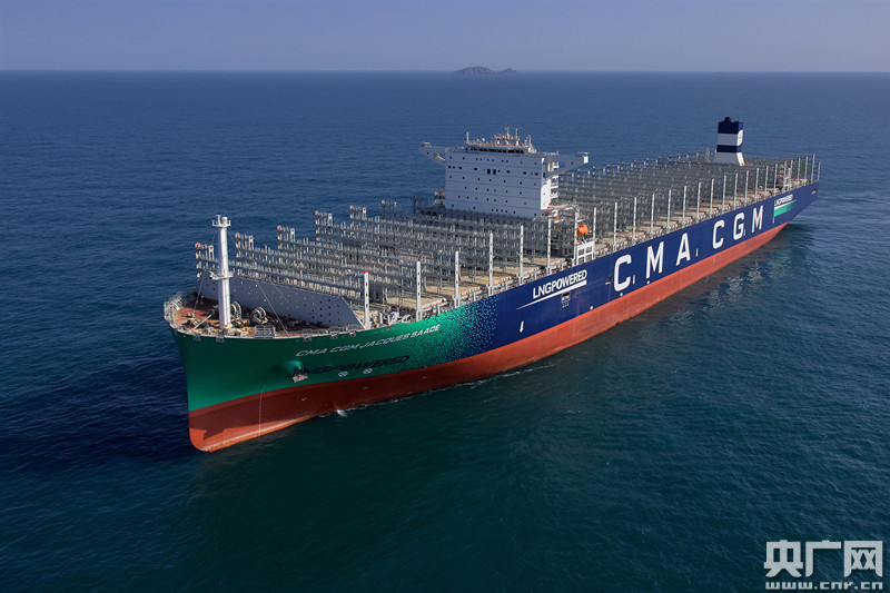 世界首艘23000TEU雙燃料動力集裝箱船“達飛雅克·薩德”號(央廣網(wǎng)發(fā) 中船集團提供)