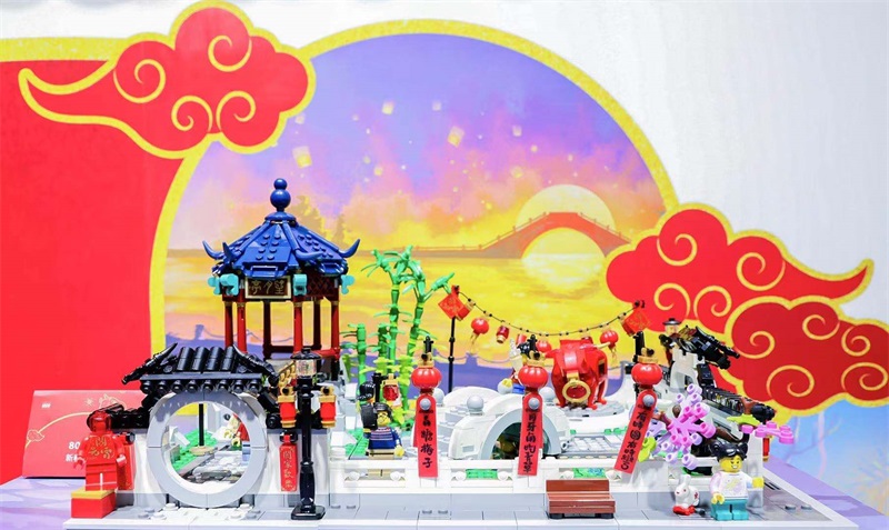 樂(lè)高新春燈會(huì)套裝以繽紛多彩的傳統(tǒng)節(jié)日元素,活靈活現(xiàn)地呈現(xiàn)了元宵佳節(jié)的場(chǎng)景。該套裝包含一座由樂(lè)高積木顆粒拼搭的江南園林,其中包含月亮拱門(mén)、亭臺(tái)樓閣、池塘、小橋以及象征著牛年并且點(diǎn)亮的牛形燈。套裝內(nèi)還包含元宵節(jié)必不可少的兔子燈和湯圓等,充滿濃濃的節(jié)日氛圍。