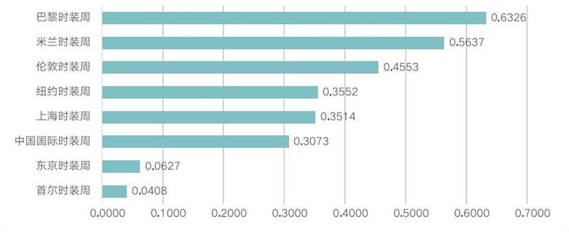 圖為2020年各大時裝周“要素聚集度”評價結(jié)果