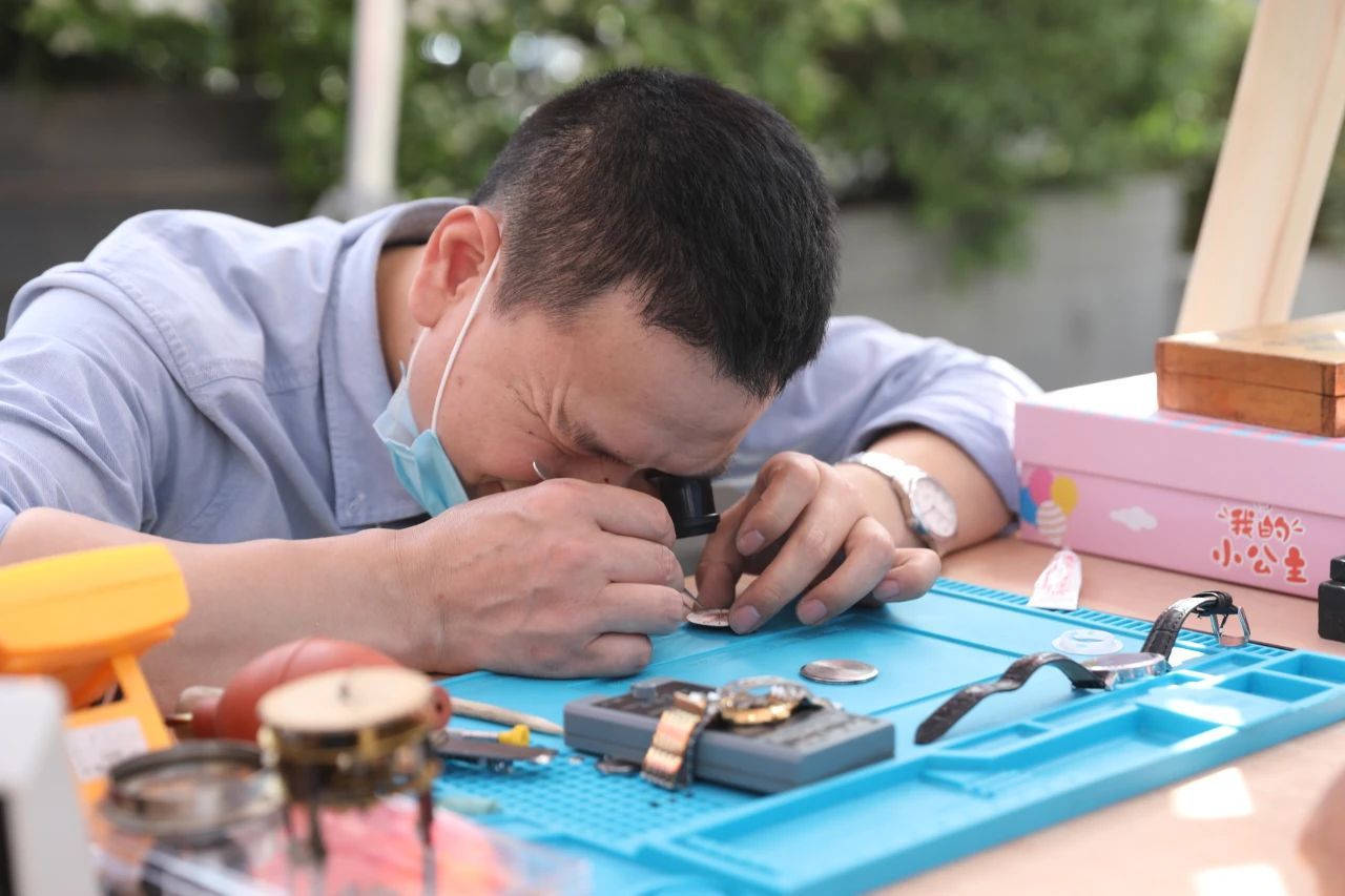 市民吳老伯得知后特意趕來(lái),他告訴記者,自己的手表戴了十多年,沒想到在這里有老師傅幫忙修理,還不收服務(wù)費(fèi),真是太好了,“又有非遺美食,還有手藝人維修,真的很方便!