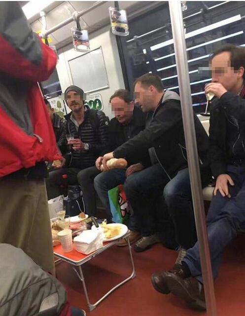 4月7日,@_TCAHILL17發(fā)布了一張四五個外國人在上海地鐵11號線車廂內(nèi)擺起桌子大肆吃喝的圖片,引起網(wǎng)友廣泛關(guān)注。地鐵方面表示,根據(jù)《上海市軌道交通乘客守則》第十一條規(guī)定,乘客“不得在列車車廂內(nèi)飲食、大聲喧嘩”。不過,上述乘客守則不具有法律約束性,因而也沒有具體的處罰規(guī)定,不同于軌交管理條例。在現(xiàn)行《上海市軌道交通管理條例》中,并沒有“禁止飲食”的相關(guān)條款。(據(jù)4月10日東方網(wǎng))