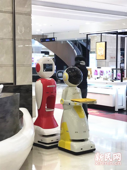 此外,新世界大丸百貨還迎來了兩位智能機器人迎賓導購。記者在一樓商場看到,智能送餐接待服務機器人“小丸丸”面帶微笑,手端托盤為來往顧客送上免費飲料;另一臺講解引領機器人“小新新”則熱情地在現場為顧客講解福袋購買須知,并幫助有需要的顧客引路。根據需要,“小新新”還能執(zhí)行預設程序為小朋友們表演唱歌、跳舞。而“小丸丸”自己則更像一位充滿好奇心的小朋友,面部可變換4種表情,仿佛真人一般擁有喜怒哀樂的感情。(新民晚報記者 張鈺蕓)