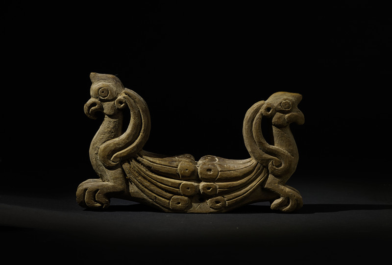 憑借強大的國力,貴霜王朝不僅對周邊地區(qū)產(chǎn)生一定的文化影響,而且在經(jīng)濟上產(chǎn)生了更為深入的影響。中亞地區(qū)最具特色的本土藝術(shù)就是建筑裝飾。當(dāng)貴霜人成為這一地域的統(tǒng)治者之后,他們?nèi)诤掀渌囆g(shù)形式并盡情發(fā)揮,將建筑裝飾藝術(shù)也推向了一個新的階段。在展品“木雕人獸飾板”中刻畫的有翼神獸是虛構(gòu)的神話動物,大象也不可能出現(xiàn)于古代和田地區(qū),這兩種動物形象的同時出現(xiàn)說明了古代和田人與外部世界的溝通交流。