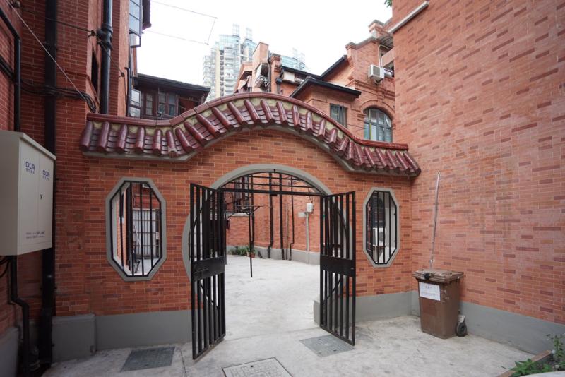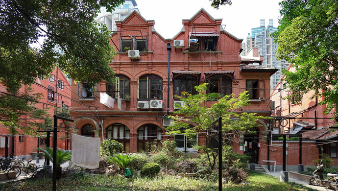西王花園弄堂博物館的名字有其淵源。原來,西王小區(qū)原名為西王家厙花園弄。厙為村莊的意思,因當(dāng)時(shí)村民以王姓為主,故名。上海開埠后,英沙遜洋行于此購地建造起英式住宅數(shù)十幢,以供僑民居住。1900年前后,大地產(chǎn)商程謹(jǐn)軒購進(jìn)大量土地,在卡德路兩側(cè)建起花園洋房和里弄房。1911年花園里弄式住宅建成,較高程度地仿照當(dāng)時(shí)西方住宅的設(shè)計(jì)和樣式。因弄堂內(nèi)廣植花木,嘉卉飄香,故稱“王家厙花園弄”。如今,西王小區(qū)內(nèi)的12幢花園里弄住宅仍保存完好。住宅呈南北兩排布置,每幢各六排,行列式展開,每幢建筑共有三層,磚木混合結(jié)構(gòu),單幢住宅呈“品”字布局。外墻主立面對(duì)稱,設(shè)連續(xù)的清水紅磚券式外廊,采用弧形券和半圓形券,券下使用簡化的古典式清水磚柱。主樓外立面墻體采用紅磚清水墻,輔樓立面為青磚清水墻,采用紅磚清水腰線,檐口天溝采用線條外挑,主樓屋頂為平瓦雙坡屋面,并設(shè)計(jì)有老虎窗。弄堂博物館位于小區(qū)弄口,原先是某物業(yè)公司的倉庫,石門二路街道通過置換的方式,將之用作博物館的展示空間。在外觀設(shè)計(jì)上,博物館延續(xù)了清水紅磚的外墻風(fēng)格,與小區(qū)的歷史風(fēng)貌保持一致。