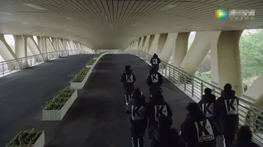 這場戲可不就在嘉定保利大劇院拍的!劇院是大家熟悉的安藤忠雄在上海的作品,主形體是邊長為100米的正方形,清水混凝土外墻外包裹了一層透明的玻璃幕墻;在這個立方體中五根圓筒狀的管道空間相互貫穿,構建出動態(tài)的室內(nèi)空間,同時在外立面上切割出獨特造型,構成了它標志性的形體。圓筒形空間作為建筑的重要亮點呈現(xiàn)出如萬花筒一般豐富多變的面貌。