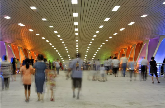 “蘿莉歌姬”魷小魚的簽售會就在靜安800秀,前身為上海電機廠,身長120米的生產(chǎn)車間化身成為秀場空間,精致的木質頂梁結構得以保留,。玻璃幕墻將秀場長廊“打開”,在常德路的街角開辟出獨特的視覺通道。