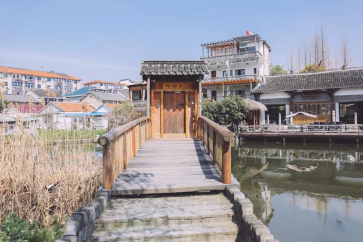 這里是位于朱家角的雅韻居客棧,這座直通客棧的木橋,便是米邵飛喝多了,佟年、孫亞亞經(jīng)過的木橋。但距離拍攝時,如今木橋的圍欄已經(jīng)換了模樣。院內(nèi)亭臺樓閣,堆石樹木,小橋流水。鳥語花香的連廊與露臺,觸目所及徽派建筑一派祥和。