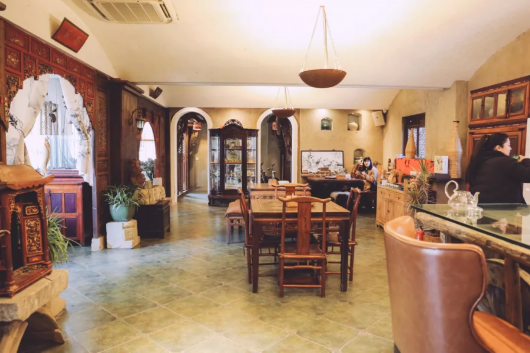 前臺大廳,就是韓商言,佟年,米邵飛,孫亞亞四人吃飯的地方。修舊如舊的徽式客房,仿木結構的坡頂、粉墻、黛瓦、馬頭墻,復古通透的木結構廳堂,這些徽派建筑特色讓客棧與周圍水鄉(xiāng)景致渾然一體,使建筑更顯簡約、穩(wěn)重。在這里可以約上三五好友聊天,品茶,還可以自己動手沏茶,感受茶藝文化的魅力。