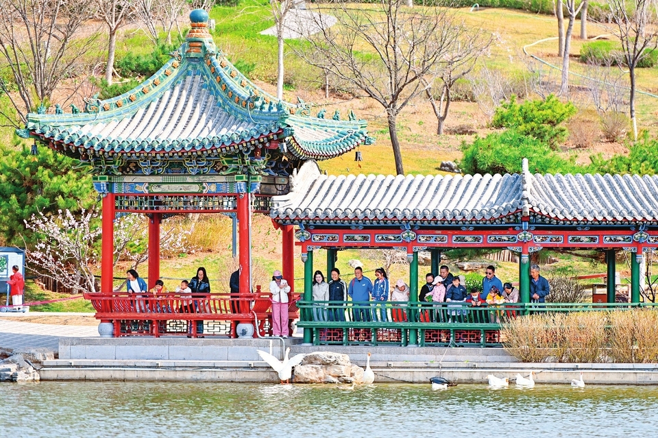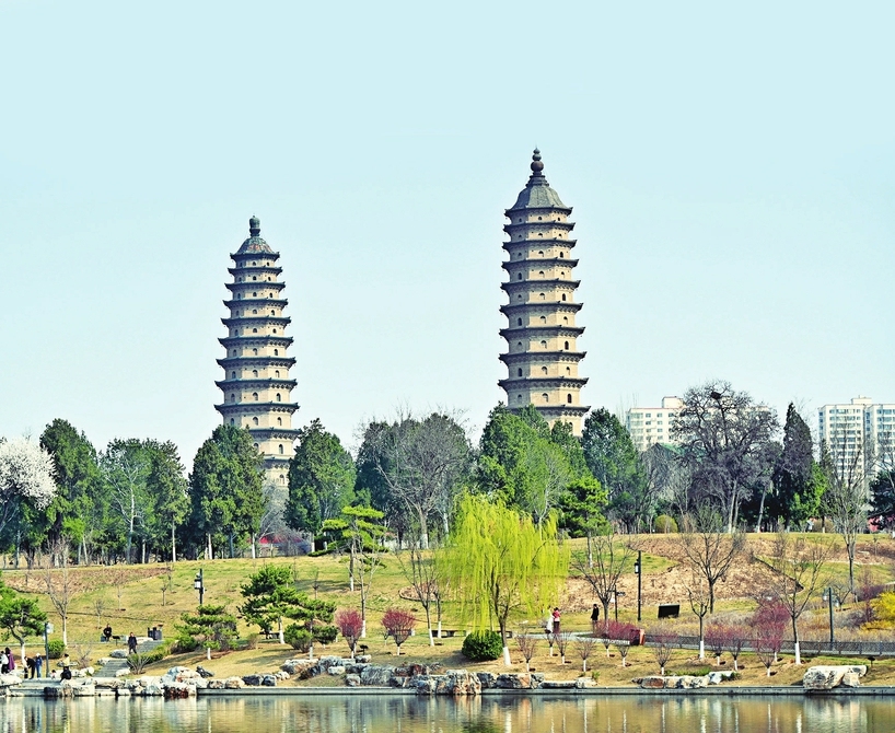 4月13日,太原市雙塔公園內(nèi)春意盎然,凌霄雙塔矗立其間,市民漫步園區(qū),在春日景致中盡享休閑時光。(記者范文靜)