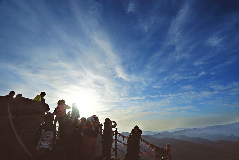 12月15日,游客在吉縣人祖山主峰觀看日出。初冬時(shí)節(jié),人祖山風(fēng)光無限,以其古老動人的傳說、多種多樣的文化遺存,吸引了眾多海內(nèi)外游客。 記者孫榮祥攝