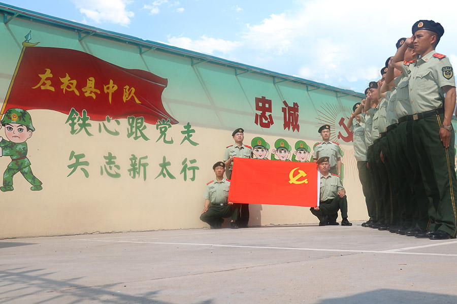 組織新黨員宣誓 人民網(wǎng)太原7月5日電 7月4日,武警晉中支隊壽陽中隊、昔陽中隊、左權(quán)中隊分別組織廣大黨員、團員,來到駐地尹靈芝烈士紀念館、虎頭山大寨紀念館和左權(quán)紀念館,通過現(xiàn)地參觀見學(xué)、瞻仰革命舊址、追尋烈士足跡,進一步堅定政治信仰、強化使命擔(dān)當(dāng)。這是武警晉中支隊著眼“兩學(xué)一做”常態(tài)化制度化,以“七一”黨建為契機,進一步延伸拓展“黨團活動月”所開展的具體活動之一。 為隆重紀念黨的96華誕,迎接和服務(wù)黨的十九大,進一步增強黨組織的凝聚力和戰(zhàn)斗力,激勵基層黨組織和廣大黨員繼承和發(fā)揚黨的光榮傳統(tǒng),增強黨性意識,凝聚智慧力量,晉中支隊提前著手、周密安排、科學(xué)謀劃,在“七一”前夕,專門下發(fā)《慶“七一”主題黨日活動方案》,采取自上而下、層層選拔的方式,在全支隊范圍內(nèi)分別組織開展了“軍歌嘹亮獻給黨”歌詠比賽和“學(xué)習(xí)主席系列講話,做習(xí)主席的好戰(zhàn)士”主題演講活動。 “七一”當(dāng)天,還專門組織機關(guān)直屬隊和各基層中隊,采取異地同步展開的方式,進行了全體黨員重溫入黨誓詞、新黨員向黨旗宣誓活動,切實以豐富多彩的政治文化活動向黨的生日獻禮。著眼黨的主題活動及“兩學(xué)一做”活動的常態(tài)化制度化,支隊在慶“七一”系列活動的基礎(chǔ)上,繼續(xù)延伸啟動了“黨團活動月”;顒又,他們按階段劃分、按步驟推進,先后安排了政治主官每人一堂黨課、任務(wù)現(xiàn)場“火線入黨”、“擎黨(團)旗、戴黨(團)徽、唱黨(團)歌”系列活動,以及讀書演講、紅色故事會、看紅色影視劇等10余項配合活動;顒又兴麄儓猿肿龅健叭齻謀劃”:在融入重大活動中謀劃。他們把活動開展同“狠抓執(zhí)勤戰(zhàn)備訓(xùn)練,以優(yōu)異成績迎接保衛(wèi)十九大”緊密結(jié)合,深入開展“魔鬼周”極限訓(xùn)練、勤務(wù)“專勤專訓(xùn)”,引導(dǎo)廣大官兵把對黨的赤誠熱愛體現(xiàn)在執(zhí)勤訓(xùn)練中;在融入駐地文化中謀劃。支隊積極依托駐地文化特色,指導(dǎo)各基層中隊分別建立別具特色的鑼鼓隊、腰鼓隊、秧歌隊、吉他隊、合唱隊,通過“吹拉彈唱演、唱讀研學(xué)看”,活躍黨團活動氛圍;在融入紅色資源中謀劃。支隊還依托晉中紅色資源豐富的優(yōu)勢,開展愛國主義教育基地掛牌儀式,每逢“七一”“八一”“十一”等重大節(jié)日,都要組織官兵開展現(xiàn)地教學(xué),引導(dǎo)官兵在追根溯源中深化成效、在撫今追昔中砥礪奮進,使紅色基因融入官兵血脈,將黨團活動成果轉(zhuǎn)化為踐行強軍目標(biāo)的巨大動力和自覺行動。(趙芳 劉伯禮 李雷) -