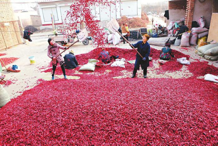 12月23日,襄汾縣趙康鎮(zhèn)趙雄村村民正忙著晾曬辣椒。該村引進(jìn)辣椒新品種,按照“合作社+基地+農(nóng)戶+科技”的產(chǎn)業(yè)化經(jīng)營模式,促進(jìn)了村民致富。