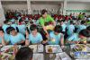 5月17日,陽曲縣首邑學校的學生在吃午飯。 為了讓貧困戶子女接受公平優(yōu)質(zhì)的教育,2017年山西省陽曲縣在原大盂中學基礎上改建了一所集小學、初中為一體的寄宿制學校——首邑學校,吸納全縣建檔立卡貧困戶的適齡子女就讀,并為他們提供免費食宿。 目前,該校共有學生411人,其中241人來自建檔立卡貧困戶,貧困學生占全部學生比例達58%,未來將會有更多貧困家庭的孩子受益于陽曲縣的教育扶貧政策,走進多彩的學堂。 新華社記者 曹陽 攝 -