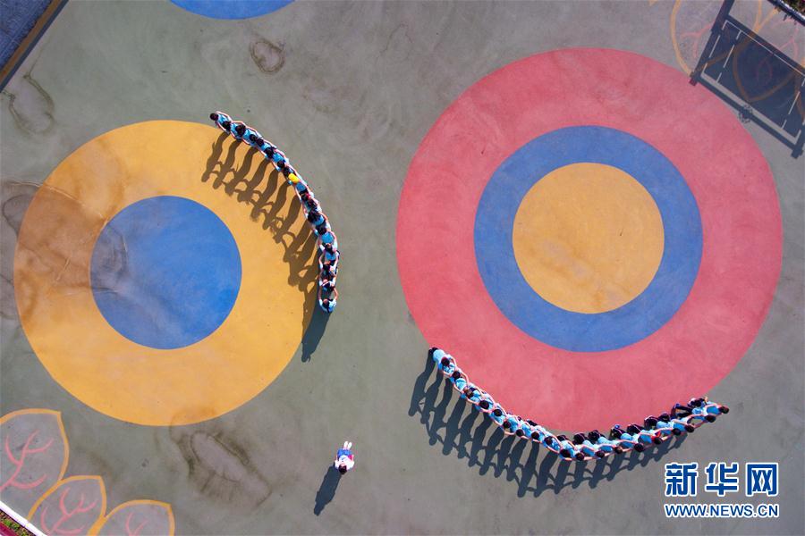 5月17日,陽曲縣首邑學校的學生在上體育課(無人機拍攝)。 為了讓貧困戶子女接受公平優(yōu)質(zhì)的教育,2017年山西省陽曲縣在原大盂中學基礎上改建了一所集小學、初中為一體的寄宿制學!滓貙W校,吸納全縣建檔立卡貧困戶的適齡子女就讀,并為他們提供免費食宿。 目前,該校共有學生411人,其中241人來自建檔立卡貧困戶,貧困學生占全部學生比例達58%,未來將會有更多貧困家庭的孩子受益于陽曲縣的教育扶貧政策,走進多彩的學堂。 新華社記者 曹陽 攝 -