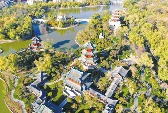10月23日,金秋艷陽下太原迎澤公園亭、臺、樓、閣錯落有致,宛如一幅古韻山水畫。近日,迎澤公園西南角二期續(xù)建項目完工開放,此次開放的五峰插云景區(qū)仿古建筑群及悅園,主要建筑將被用作展館,陳列各式作品及花卉展覽等,以供游人觀賞休憩。(記者李兆民攝)