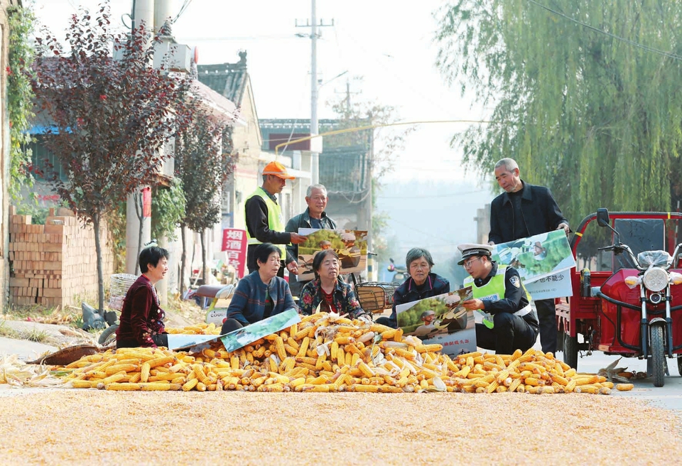 10月9日,民警在給村民們講解交通安全知識(shí)。進(jìn)入秋收后,河津市交警大隊(duì)組織民警聯(lián)合農(nóng)村勸導(dǎo)員,走村入戶開展交通安全宣傳活動(dòng),進(jìn)一步增強(qiáng)村民們的安全意識(shí)。(李泓曉攝)