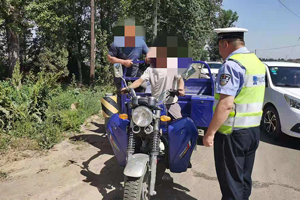 經(jīng)核査,該車(chē)后斗內(nèi)乘坐1人,車(chē)上無(wú)任何安全防護(hù)措施,且駕乘人員均未佩戴安全頭盔,存在嚴(yán)重交通安全隱患。民警當(dāng)即責(zé)令車(chē)上人員下車(chē),并結(jié)合轄區(qū)電動(dòng)三輪車(chē)典型案例,對(duì)三輪摩托車(chē)駕駛?cè)送跄澈统俗诉M(jìn)行了批評(píng)教育,向他們講解了三輪車(chē)載人的危害性和嚴(yán)重后果,要求他們要自覺(jué)遵守交通法律法規(guī),提高自我防護(hù)意識(shí),拒絕違法行為,安全文明出行,并對(duì)王某違法載人和不按規(guī)定佩戴安全頭盔的行為依法給予處罰。