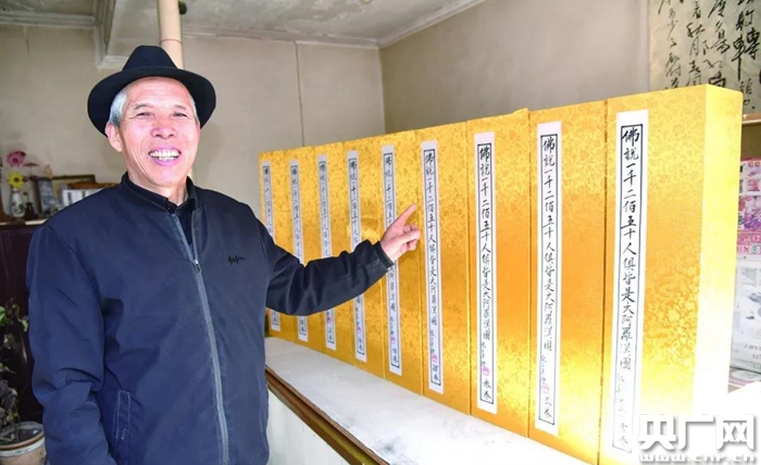 央廣網(wǎng)忻州3月14日消息(記者賀威通)日前,山西省代縣佛教泥塑彩繪非物質(zhì)文化遺產(chǎn)項目保護傳承人張占平,歷經(jīng)八年,彩繪出300米《佛說一千二百五十人俱皆是大阿羅漢圖》長卷。1250羅漢面相各異、神態(tài)迥然,有的參禪打坐,有的持經(jīng)疾行,有的冥思遐想。該作品共分9卷,每卷重達5公斤,總長300多米,寬69公分,采用傳統(tǒng)工筆畫繪畫技法構(gòu)圖而成。