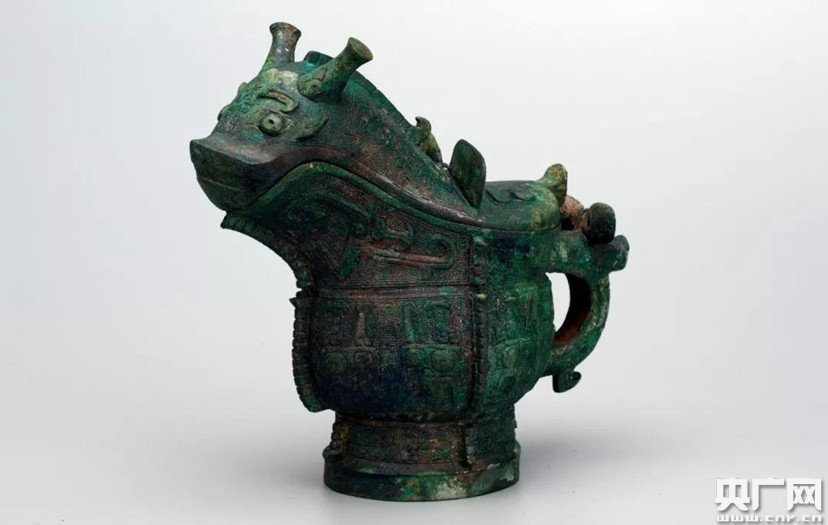 造型精美、紋飾繁縟的“獸型銅觥”,形若蹲獸,背部為蓋,通過它仿佛能看到3000年前好酒的先人觥籌交錯(cuò)的宴飲、祭祀場(chǎng)景。