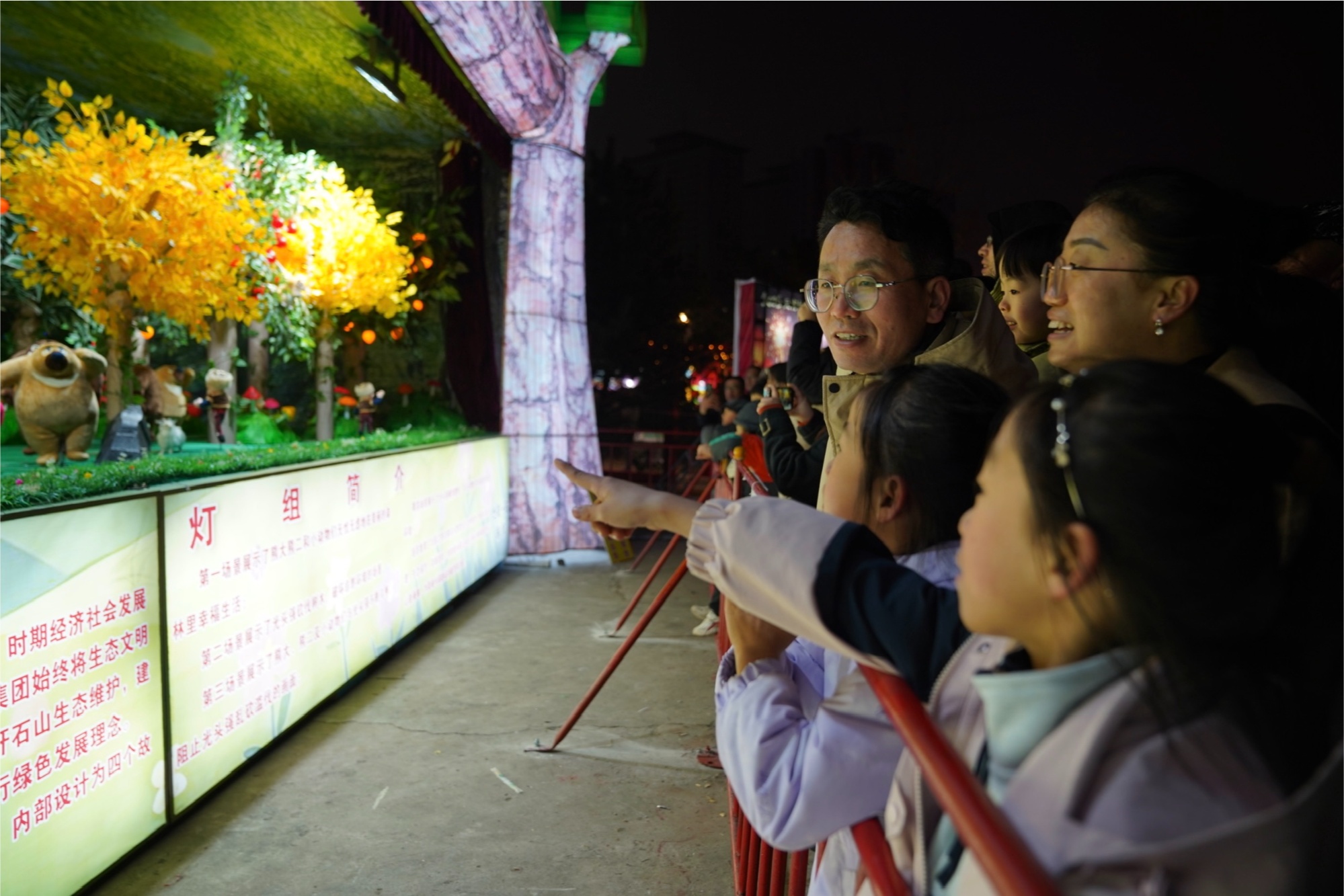 為了讓今年燈展既有年味,又更好契合新時代精神,團(tuán)隊耗時近半年,精心打造反腐倡廉、鄉(xiāng)村振興、生態(tài)平衡、礦山巨變四大主題燈組,將家國情懷、礦山發(fā)展與民生愿景,一一融進(jìn)光影之中!胺锤睙艚M以“于成龍巡視”為原型,清風(fēng)入景,傳遞清廉文化;“鄉(xiāng)村振興”燈組展現(xiàn)從人力耕作到機(jī)械化作業(yè)的時代跨越;“生態(tài)平衡”燈組巧用卡通形象,倡導(dǎo)綠色守護(hù);“礦山巨變”燈組還原現(xiàn)代化采掘場景,盡顯智能礦井、綠色發(fā)展的嶄新面貌。