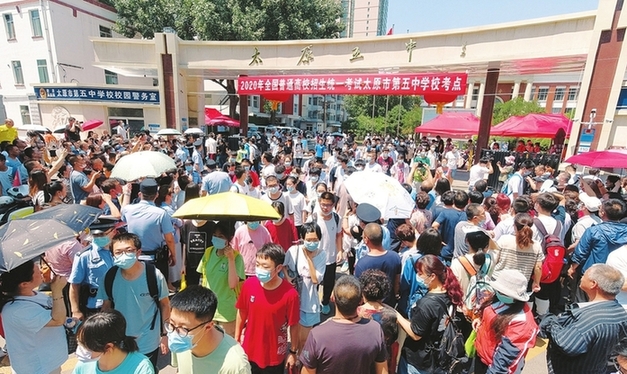 7月7日,2020年全國(guó)高考拉開(kāi)帷幕。圖為全國(guó)普通高等學(xué)校統(tǒng)一招生考試太原五中考點(diǎn),首科考試結(jié)束后,考生滿(mǎn)懷信心走出考場(chǎng)。 記者李兆民攝