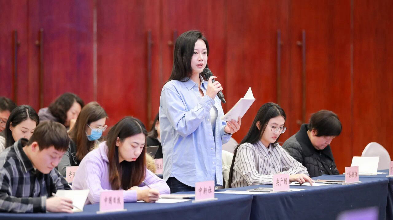央廣網(wǎng)記者現(xiàn)場進行提問(山西省人民政府新聞辦公室供圖)