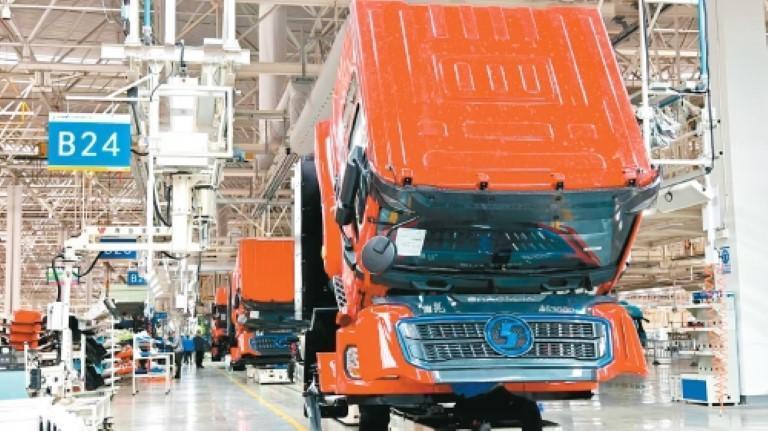 正在作業(yè)中的陜汽生產(chǎn)線。(資料圖片)
