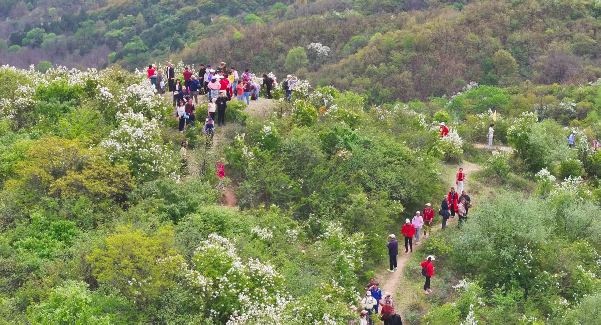 游客們攜家暢游,結(jié)伴登高,著古裝打卡留影;親子家庭沉浸式親近自然,在山野間開啟生態(tài)研學(xué)之旅。攝影愛好者齊聚創(chuàng)作點(diǎn)位,長焦定格奇峰映雪海,廣角收納山川伴繁花。整個(gè)景區(qū)洋溢著春日的生機(jī)與歡悅。