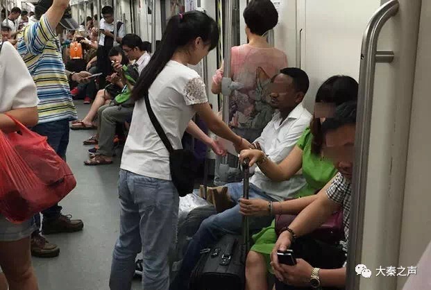 “聾啞人”在地鐵上索捐款 圖片來自網(wǎng)絡(luò)