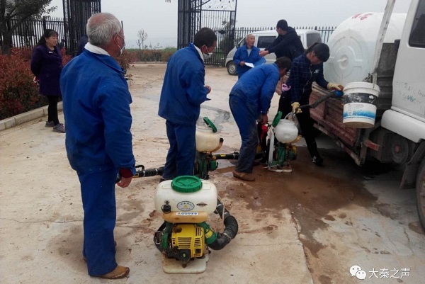 綠嶺農(nóng)場農(nóng)戶為機(jī)械噴霧器加水