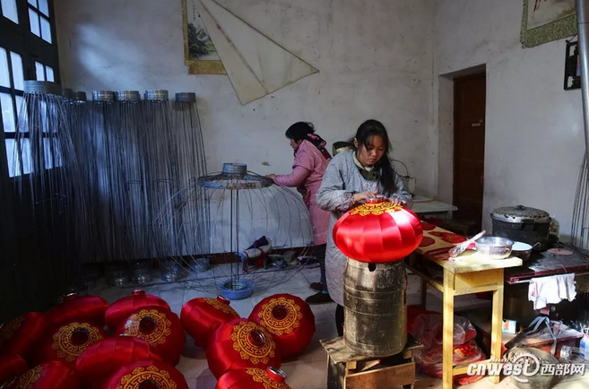 記者在西安市灞橋區(qū)白鹿原上的“燈籠村”看到,春節(jié)臨近,白鹿原上編制燈籠手藝人夜以繼日正在忙碌地扎制各種燈籠。