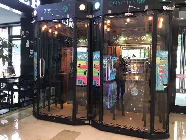 記者看到,在西安市的各大商場、電影院門口佇立著一個個“迷你KTV”,隨唱隨走、隨時娛樂、方便快捷。