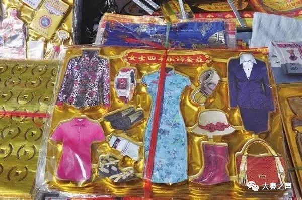 臨近清明節(jié),記者在西安市一些墓園區(qū)路邊祭品攤點和商店內(nèi)看到,除了傳統(tǒng)祭祀用的冥幣、紙錢之外,“豪車”“別墅”“手機”“電腦”“洗護用品”“無線路由器”“高清電視盒子”等“時髦”祭品擺放顯眼,“美元”“英鎊”“歐元”大行其道,搶眼坐鎮(zhèn),“服裝超市”“吃喝超市”“珠寶大全”以“套餐”形式粉墨登場。