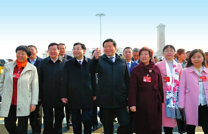 承載著億萬人民的期待,肩負(fù)著擘畫藍(lán)圖的重任,十二屆全國人大五次會議今日將在北京人民大會堂開幕。圖為出席會議的陜西代表團(tuán)代表走過天安門廣場(3月4日攝)。