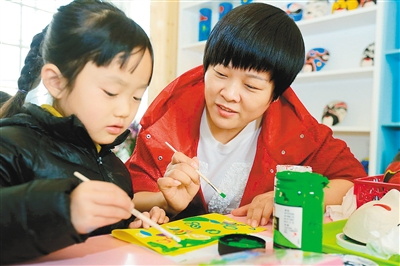 昨日,“愛心媽媽”孫婷收到許多幼兒園孩子們的鮮花。為了解決灃東新城石化大道周邊居民及這里一家大型物流食品交易中心入駐商戶和外來務(wù)工人員的孩子入托難的問題,愛心企業(yè)家孫婷女士專門在物流園區(qū)內(nèi)擠出一塊地方建設(shè)了一所幼兒園,讓這里的孩子們都能順利入托。圖為“愛心媽媽”孫婷和小朋友一起繪畫。 首席記者 張宇明 攝