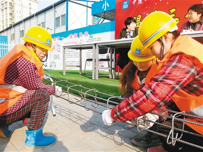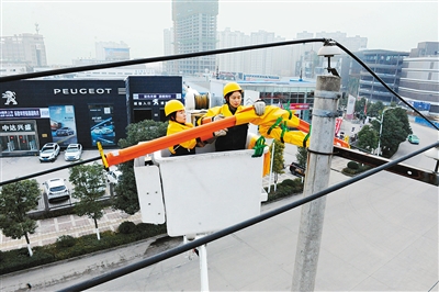 一支由4名年輕女性組成的帶電作業(yè)組,自去年年底亮相安康街頭開展帶電作業(yè)后,便以嫻熟的技藝和干練的作風(fēng)獲得好評。據(jù)悉,這支女子帶電作業(yè)小組來自國網(wǎng)陜西安康供電公司,平均年齡24歲,為西北地區(qū)首支女子帶電作業(yè)組。 記者張松 通訊員劉芳 攝