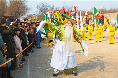 說到耍社火,許多人的第一反應(yīng)都是在農(nóng)村。而今年春節(jié)期間,大明宮國家遺址公園推出了以“天狗下凡春及第丹鳳朝陽中國年”為主題的新春唐人節(jié)活動,其中最引人關(guān)注的就是200多名社火傳承人帶來的社火表演。