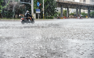 昨日下午,一場暴雨突襲古城。在給市民帶來驚喜的同時也給出行的人造成諸多不便。 記者 王健 攝