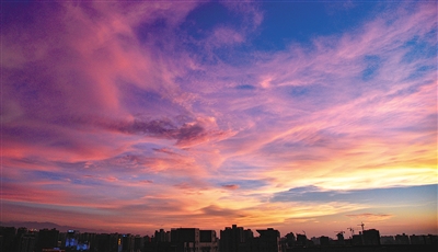 昨日傍晚,大雨過后的古城晚霞滿天,美如畫卷。 記者 王健 攝