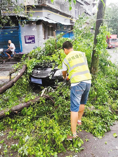 暴風(fēng)雨后 多處綠化樹“負(fù)傷”