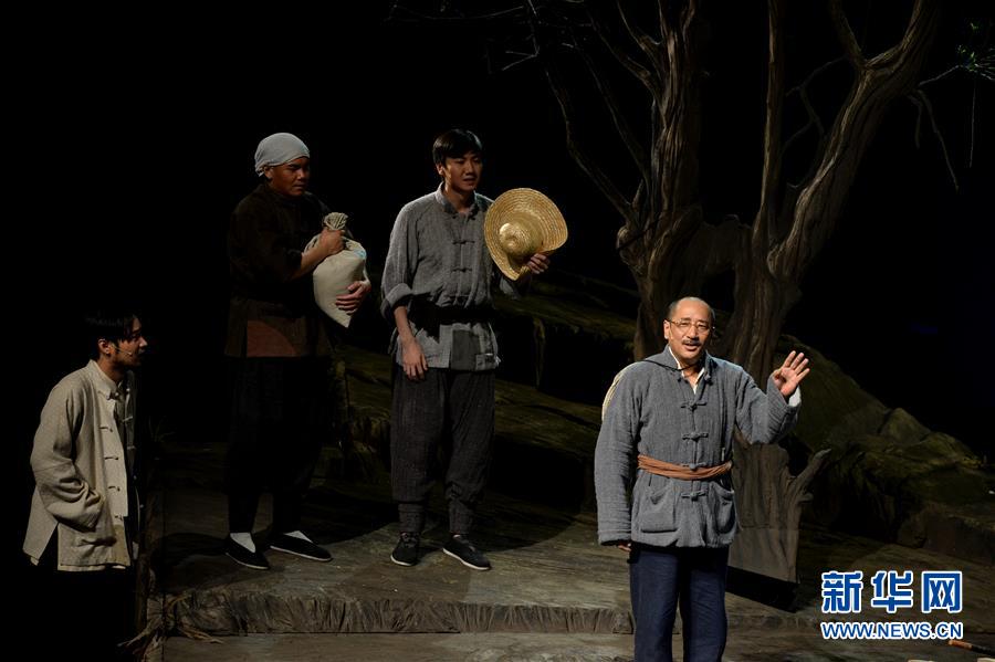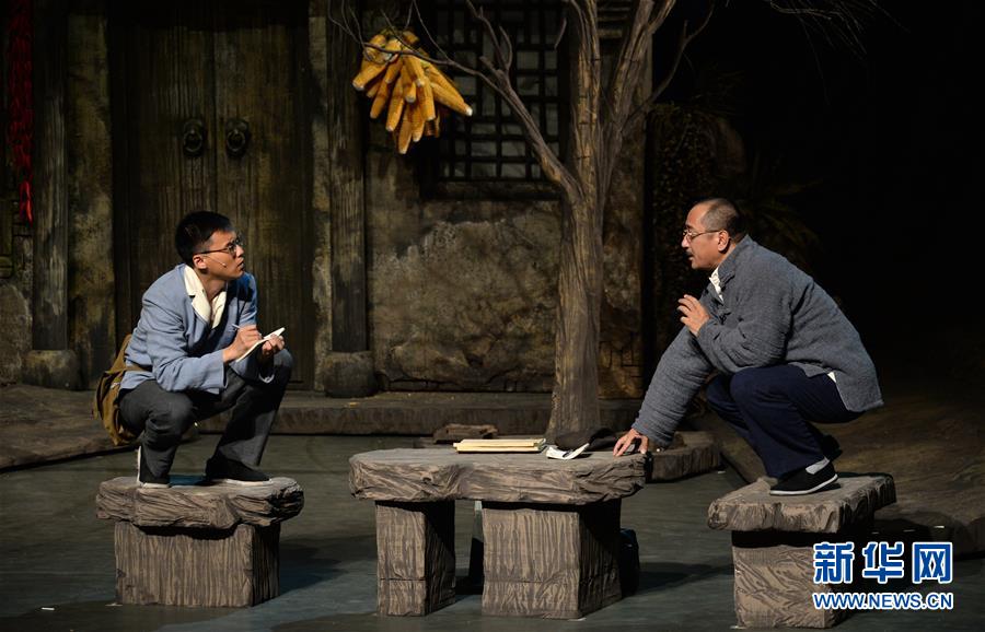 西安話劇院演員在西安新城劇場演出話劇《柳青》(9月15日攝)。 9月15日晚,由西安話劇院創(chuàng)作排演的話劇《柳青》亮相第五屆絲綢之路國際藝術(shù)節(jié)。話劇《柳青》講述了當代著名作家柳青放棄城市優(yōu)渥的生活條件,帶著妻女毅然在陜西長安皇甫村扎根14年,從農(nóng)民群眾豐富多彩的生活中汲取營養(yǎng),最終創(chuàng)作出長篇小說《創(chuàng)業(yè)史》的生動故事。話劇大量運用了方言和秦腔樂曲元素,充滿了陜西地方風情。 新華社記者李一博攝