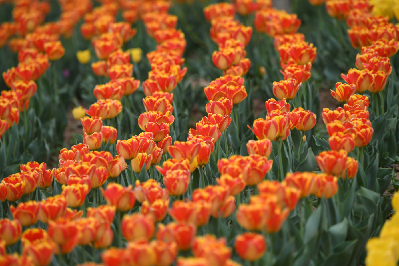 此外,花展期間園區(qū)還將面向市民推出“生日免票活動(dòng)”,凡2018年3月31日至2018年5月10日,游客生日當(dāng)天(以身份證日期為準(zhǔn)),憑本人身份證可享免費(fèi)入園一次。郁金香是早春花卉,因其高貴的氣質(zhì)一直享有“花中皇后”的美名,屬長日照花卉,性喜向陽、避風(fēng)。今年園區(qū)的花展品種繁多,花展以紅、黃、橙、粉為主色調(diào),搭配白、紫、藍(lán)、黑色等進(jìn)行設(shè)計(jì)。園區(qū)為順應(yīng)游客游覽主線路,將郁金香按早、中、晚品種相間種植,主要集中在西大門、水景園東側(cè)、百卉園等地。布展利用不同品種及花色的郁金香搭配,組成冷暖色調(diào)、俄羅斯方塊、三原色、彩虹、色環(huán)、樹影等富含色彩元素的圖案。這些郁金香色彩斑斕,搖曳生姿,如沐浴在春風(fēng)里一個(gè)個(gè)嬌艷欲滴的“小美人”,藝術(shù)性地展現(xiàn)了郁金香的“色彩”之美。遠(yuǎn)遠(yuǎn)望去,各色郁金香相映成趣,景色宜人。